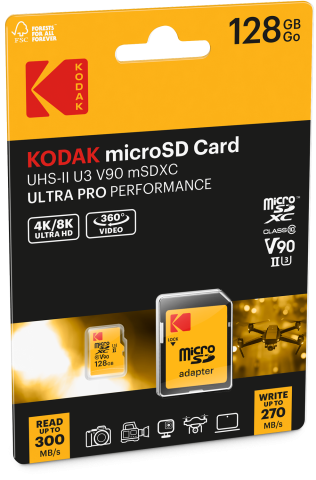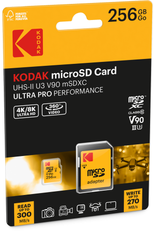 - Kodak UHS-II U3 V90 speed class (transfer rate up to three times faster than a UHS-I card.